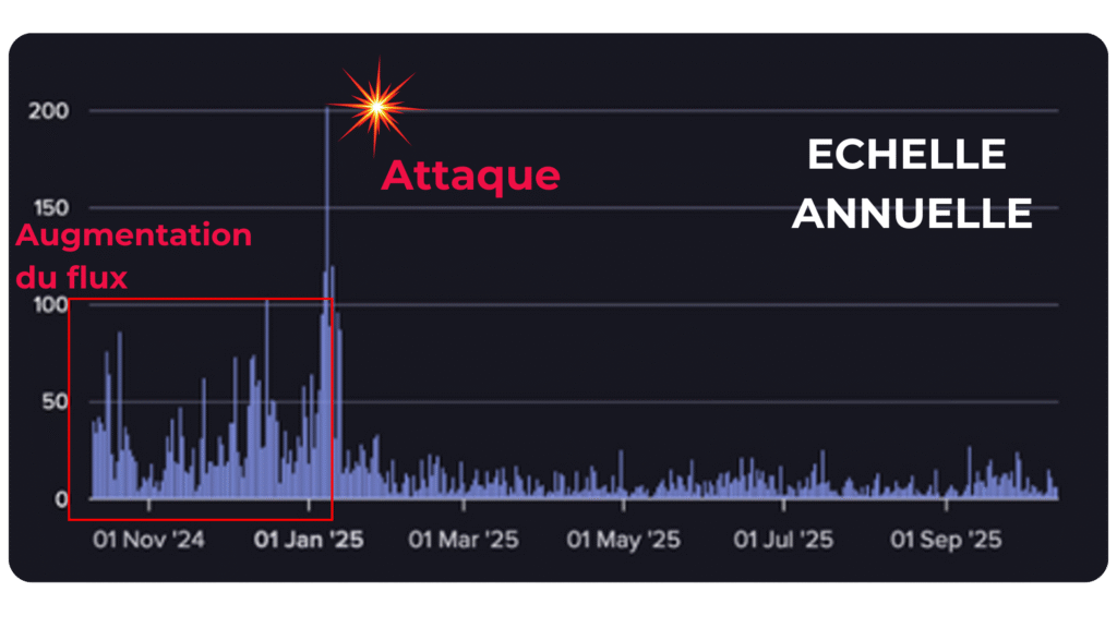 C’est là qu’on voit apparaître le fameux “avant / après” : un niveau de bruit habituel, relativement stable, puis une période d’agitation anormale avant l’attaque, qui signale une escalade du risque et permet d’anticiper plutôt que de subir.