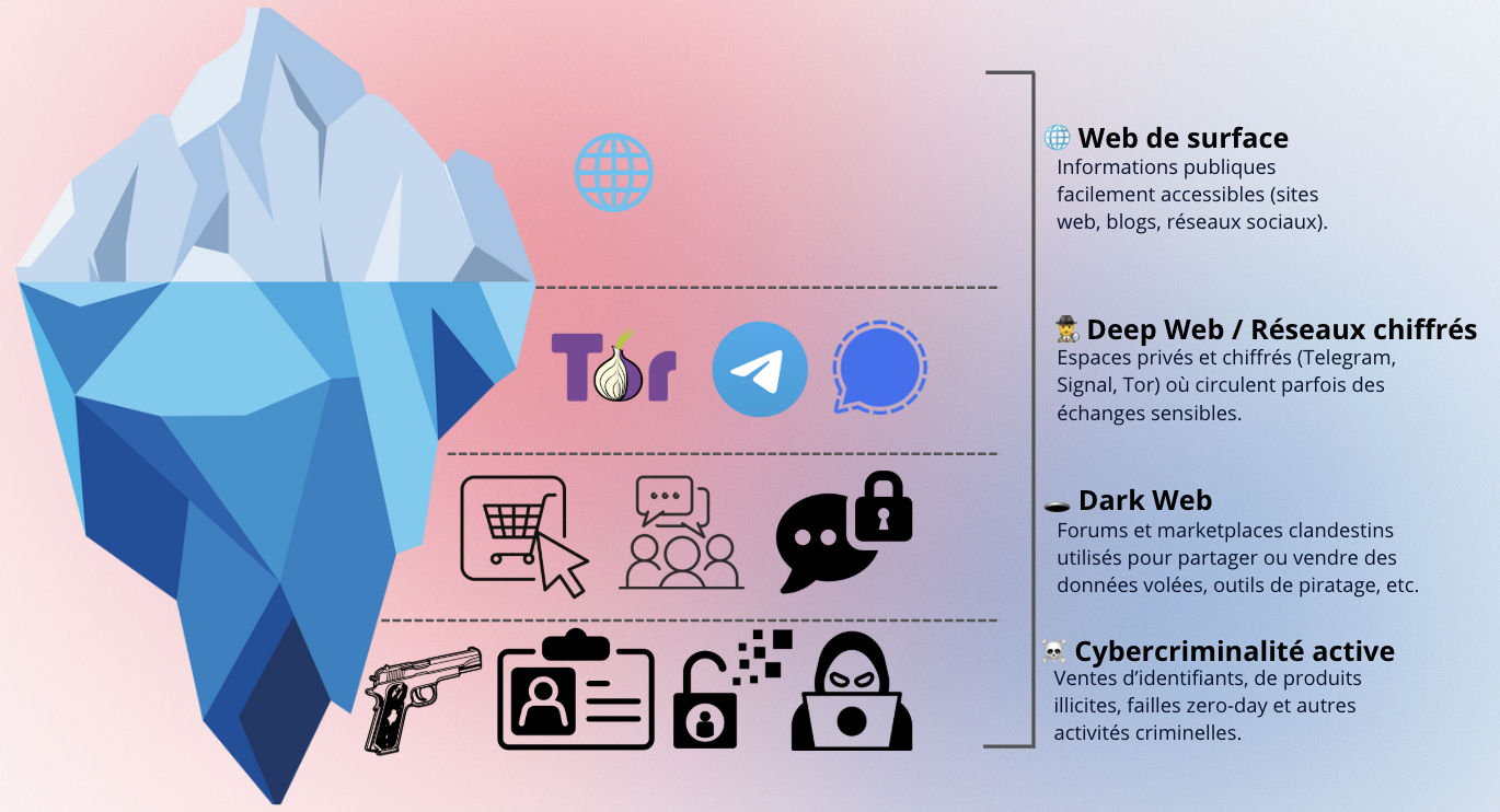 Le Dark Web est un espace où s’échangent identifiants volés, bases de données compromises, outils de piratage ou encore services criminels à la demande. Invisible pour le grand public, il représente pourtant une menace directe pour les entreprises : fuites de mots de passe, reventes d’accès à vos systèmes ou préparation d’attaques ciblées.