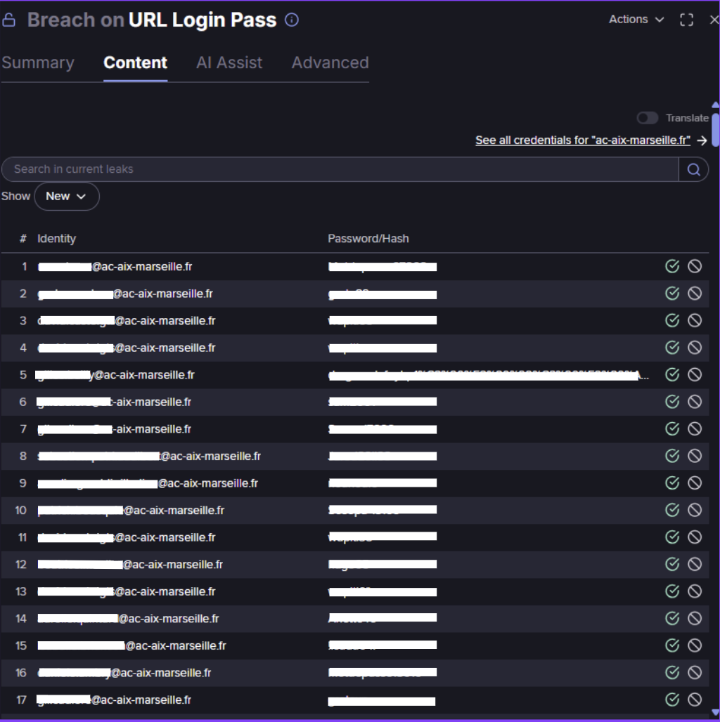 Nous disposons d’une visibilité opérationnelle sur ces environnements (marketplaces, canaux privés, site .onion, forums privés…) et les surveillons en continu grâce à des plateformes de corrélation et à une analyse humaine dédiée. Cette combinaison nous permet de faire remonter rapidement les éléments pertinents et d’en assurer le suivi jusqu’à la remédiation.